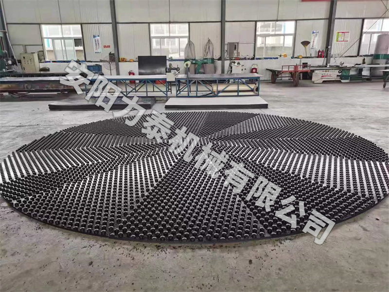 造球盤底襯安裝鑄石材料后,短期內會在球盤底面形成一層底料,可以加速成球過程,但是在使用一段時間后,由于底料在生球不斷滾動的作用下將變得越來越緊密,底料的溫度不斷升高,疏松的物料很容易粘附在其表面,使底料加厚,隨著底料的逐漸加厚,造球盤的負荷增加,同時由于鑄石板的自身比重較大,兩種負荷加在一起給球盤的傳動部位造成很大阻力,致使傳動部位的軸承、齒輪極易損環,電耗增加,給生產和維修帶來很大麻煩,加大了維修工人的勞動強度,提高了維修費用,降低了生產效率。 根據我公司與燒結球團行業的一些相關技術人員和專家的多方面交流以及我們多年來在制作球盤內襯方面的一些經驗總結,在球盤底部采用表面帶有圓柱體的高耐磨造球